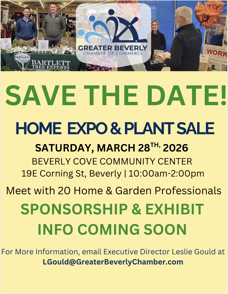 SAVE THE DATE! GBCC Home Expo & Plant Sale will happen on Saturday, March 28, 2026, from 10:00-2:00PM at the Beverly Cove Community Center, located at 191 Corning St, Beverly, MA.